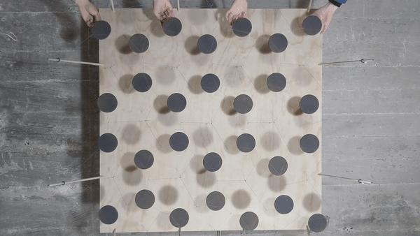 We deployed the 44 units in the wave tank and connected them together using reconfigurable ropes. The experiment consisted of 32 distinct trials with varied wave period, wave height, prototype network configuration, and vegetation density on each prototype.