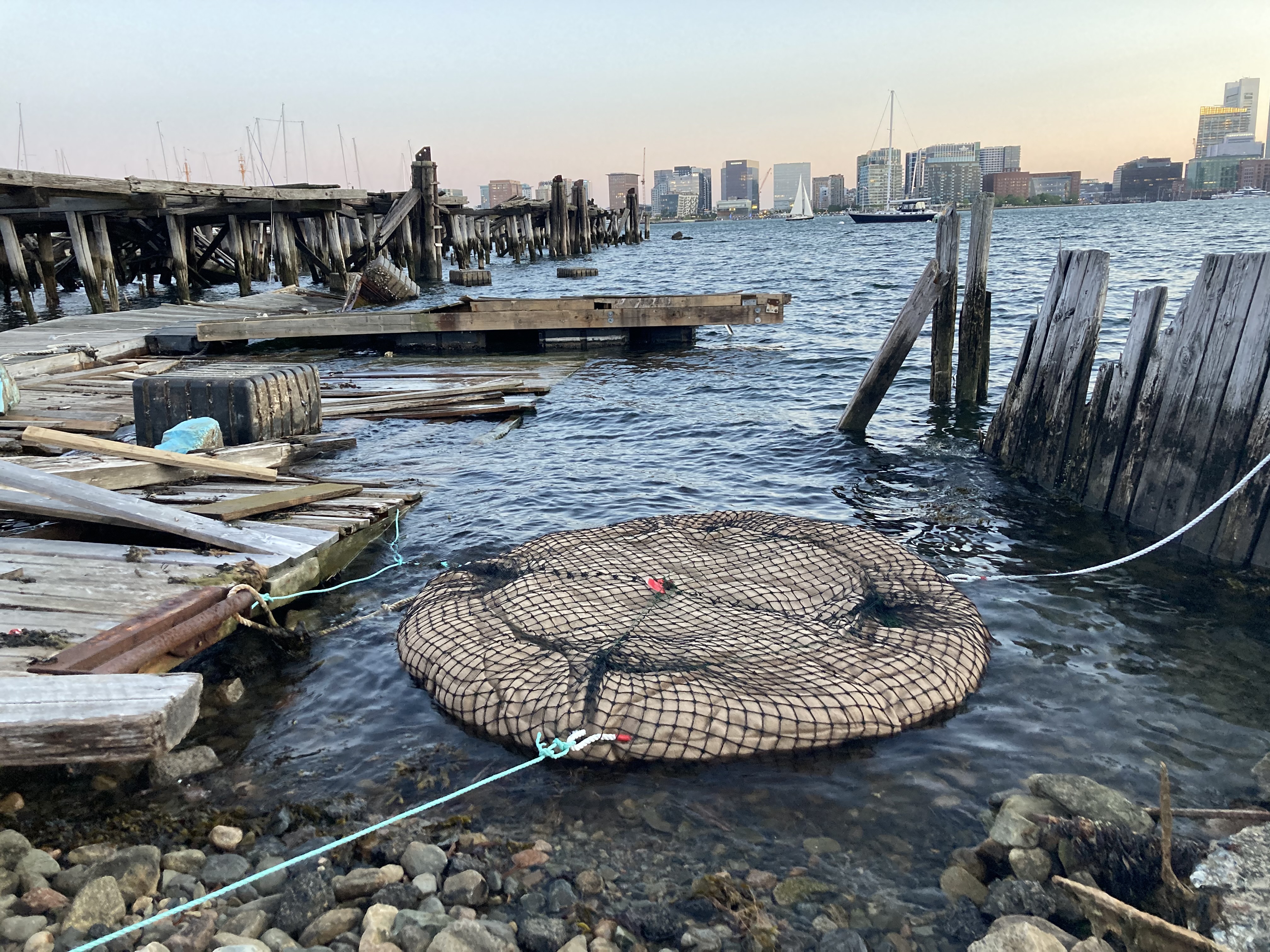 The first prototype was launched in East Boston as a solo deployment, nestled among the decrepit pilings of old piers a short distance from the intertidal assembly area. The second generation of prototypes, created with the basket and cradle apparatus, was deployed in three locations: East Boston MA, New Haven CT, and Beverly MA.