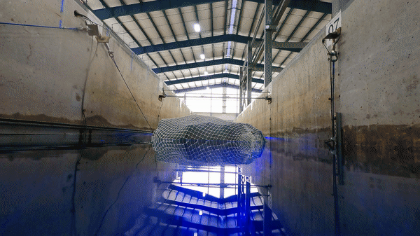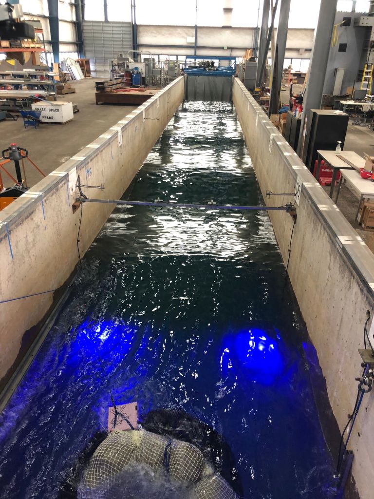 We returned to the O.H. Hinsdale Wave Research Facility at Oregon State University in the Summer of 2022 to pursue additional wave tank experiments. During this visit, we used the linear wave flume, a long skinny tank (342 foot long, 12 foot wide, 9 foot deep) that produces controlled waves that move uniformly along the long axis.