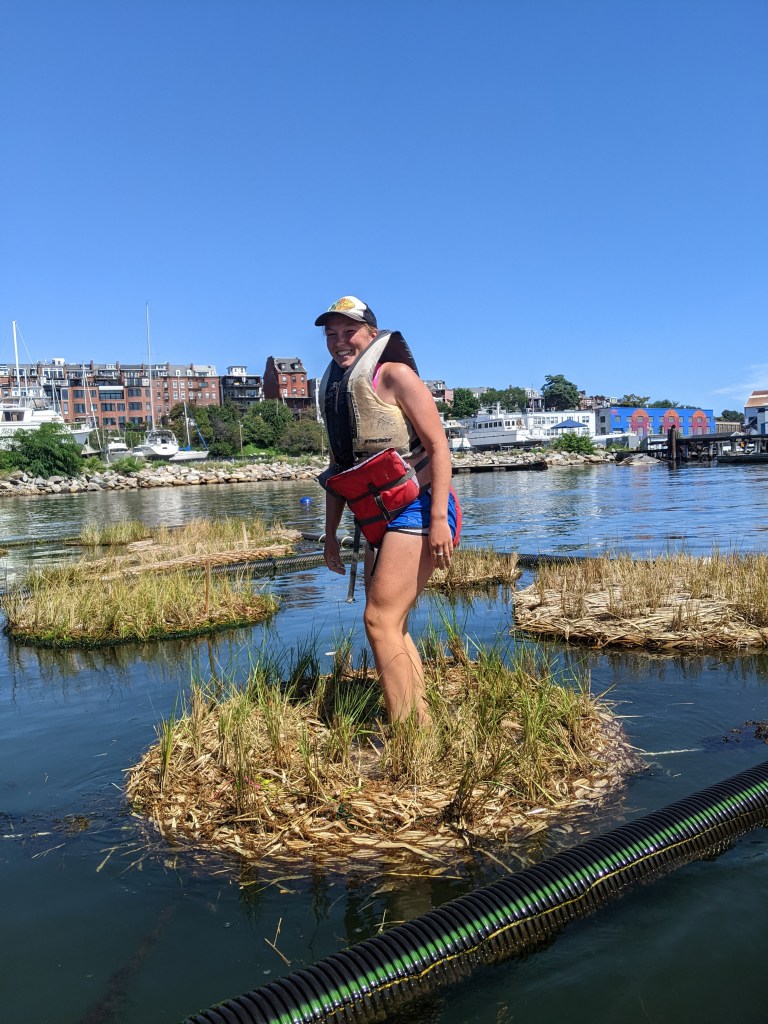 - The flat disc shape maintains the ideal immersion and wetness for Spartina alterniflora to thrive over its full top surface. This was the first prototype that enabled some Spartina plants to survive a winter floating in Boston Harbor and regrow on their own in the spring.
